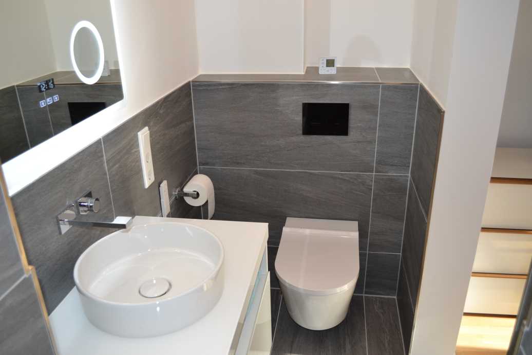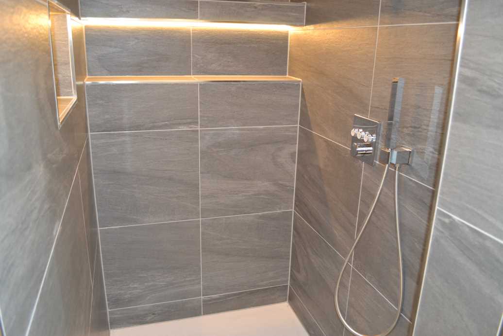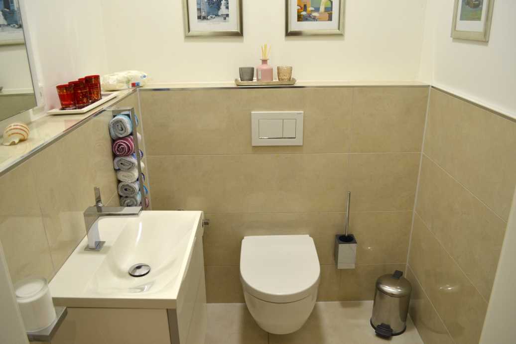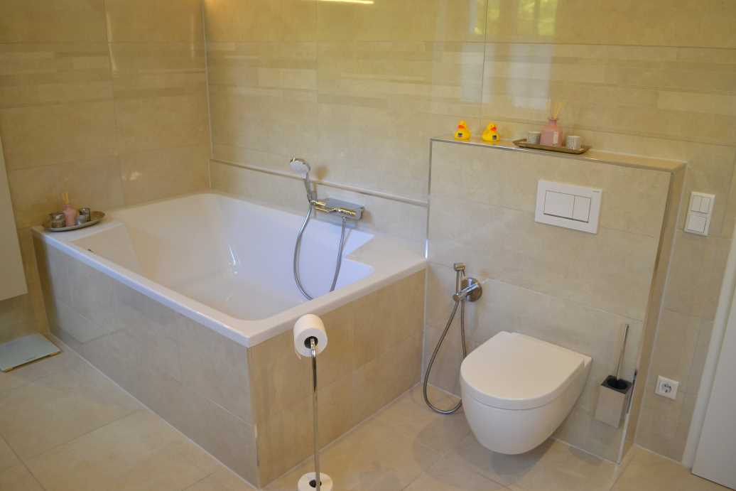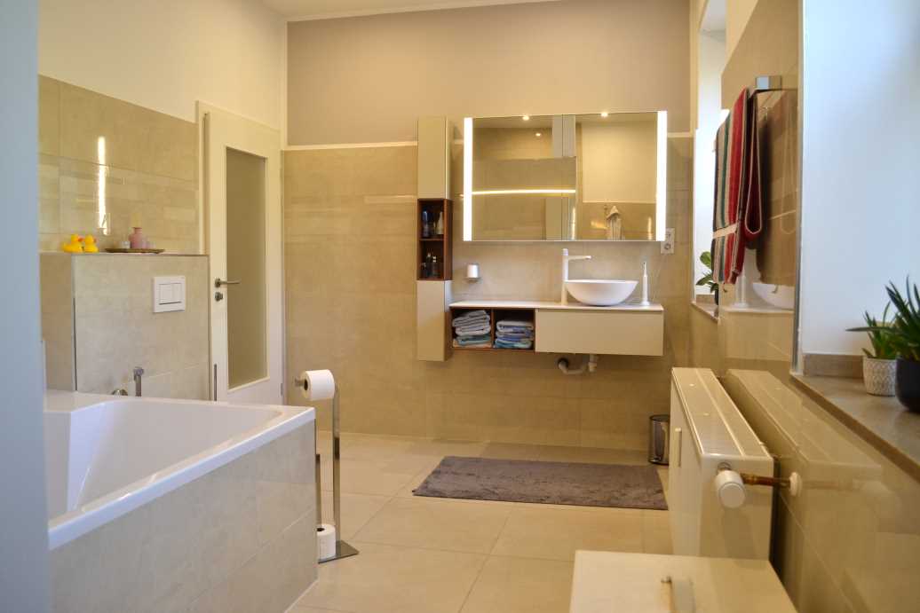 - Hauptbad mit großer Badewanne & ebenerdiger Dusche (Regenbrause)