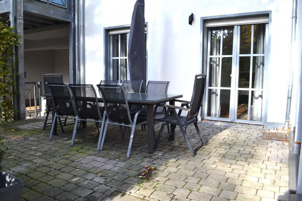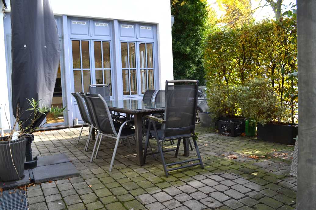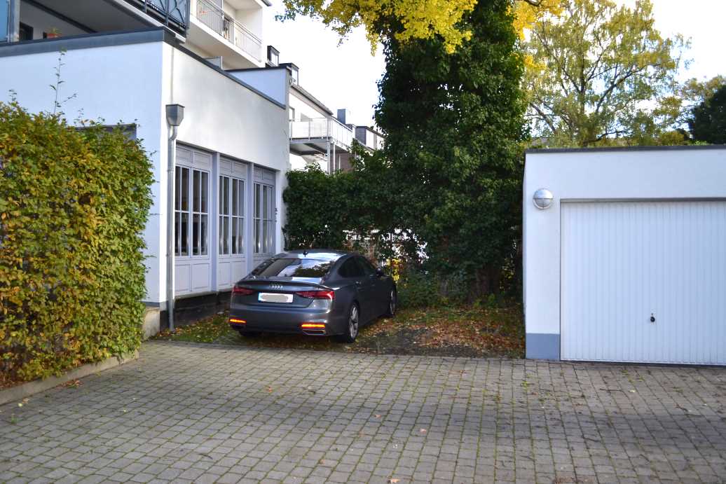 Die nach Süden ausgerichtete Terrasse ermöglicht sonnige Stunden und einen schönen Blick auf den angrenzenden Gartenanteil. Direkt hinter der Terrasse steht ein PKW-Außenstellplatz zur Verfügung.